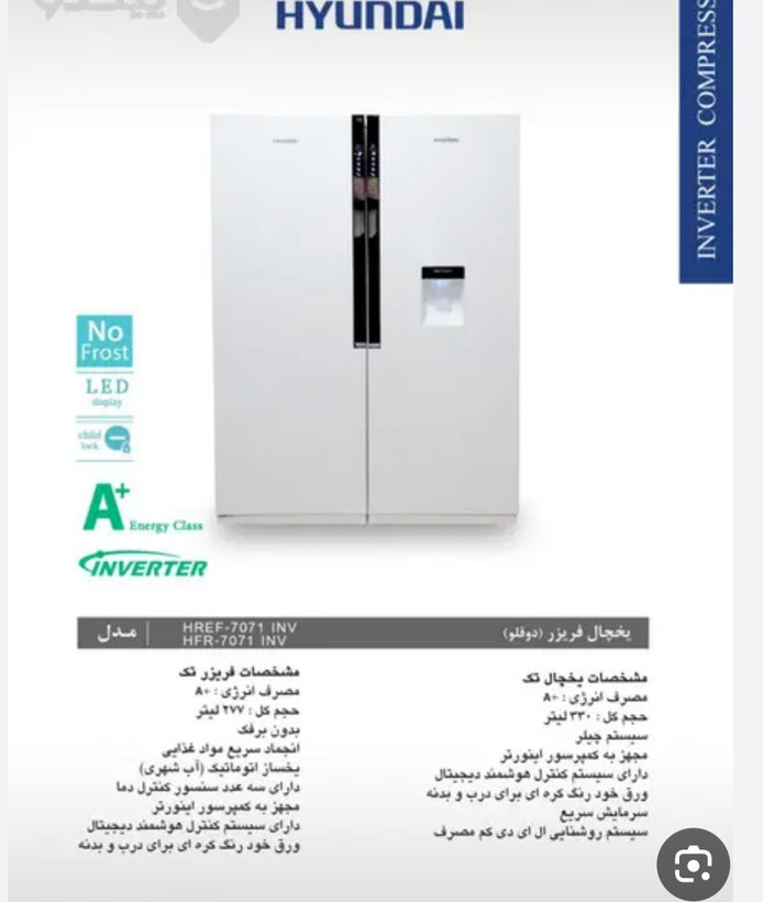 یخچال فریزر هیوندا یک برند معروف است موتور یخچال انورتر بدون برفک یخساز اتومات داخلی وآب شهری تی نظر سنجی از۵۰۰ دستگاه فروش ما همه راضی بودن که واقعا خودم هم شکه شدم لوازم خانگی آوش شمارا در خرید این یخچال راهنمایی وتضمین میدهد